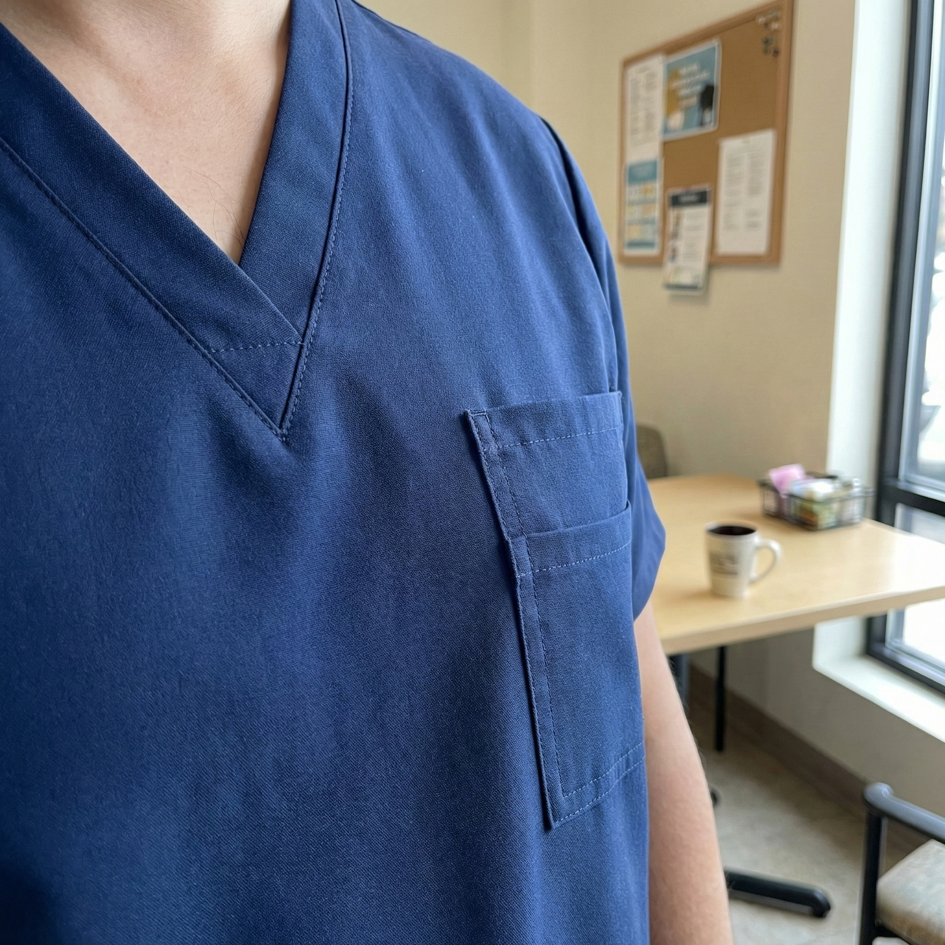 Our fabric is chosen for the sweet spot: soft against skin, structured enough to look sharp, and durable enough for constant washing. Premium feel—built for real shifts.